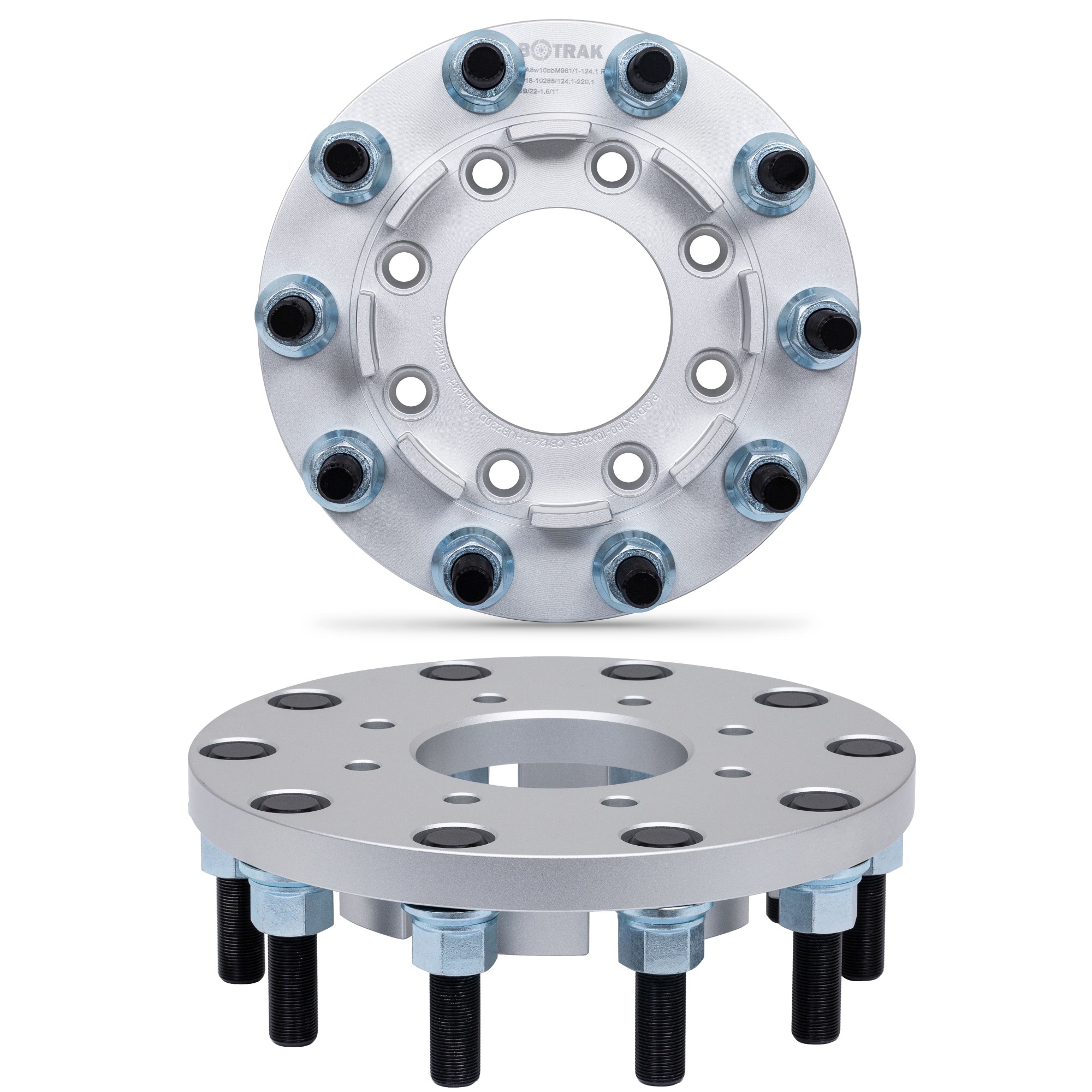 BOTRAK 8x180 to 10x285.75 semi wheel adapters to fit 22.5" or 24.5" (10x285.75) wheel rims (dual wheel systems). Made of true forged billet alloy aluminum 6061 t6, precisely CNC engineered. Grade 12.9, M22 studs hydraulic pressed. Anodized.