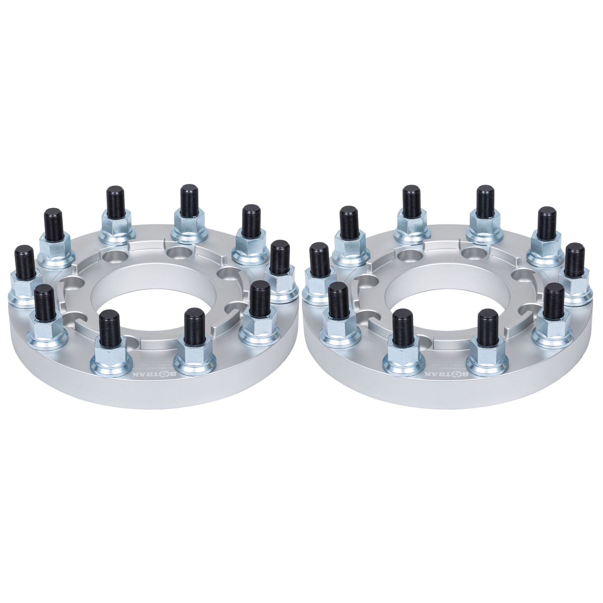 BOTRAK 8x200 to 10x285.75 semi wheel adapters to fit 22.5" or 24.5" (10x285.75) wheel rims (front & single wheel systems). Made of true forged billet alloy aluminum 6061 t6, precisely CNC engineered. Grade 12.9, M22 studs hydraulic pressed. Anodized.